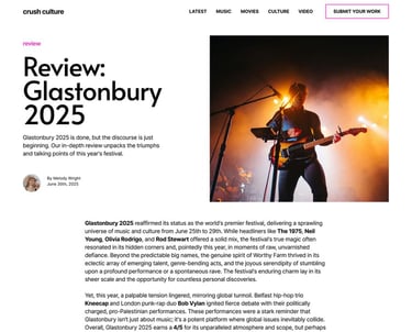 In a digital landscape saturated with music and arts blogs, the purpose of crush culture was to stand out from the mainstream noise. My core assignment was to create a modern, visually compelling website and a comprehensive style guide that would resonate with a discerning audience.