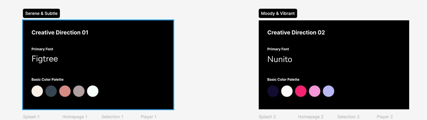 I learned that a single concept, such as "ethereal," can have many different visual interpretations. The exercise of developing two distinct directions underscored the importance of translating a feeling into a functional design. Ultimately, the creative direction was influenced by a simple, yet powerful, factor: the time of day a user would most likely engage with the app.